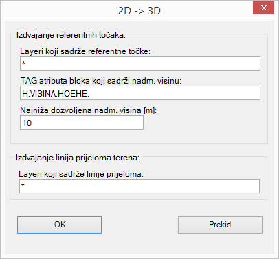 - Najniža dozvoljena nadm. visina: ako točka ima treću dimenziju manju od ovdje navedene, neće biti preuzeta kao referentna visinska točk