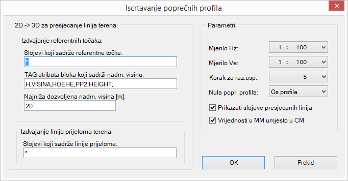 Prikazati slojeve presjecanih linija: ako je uključen, pri presjecanju linija principom 2D->3D, prikazati layer presječene linije