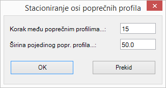 Odabir polilinije koja će postati os poprečnih profila te automatska izrada poprečnih profila prema zadanim podacima.